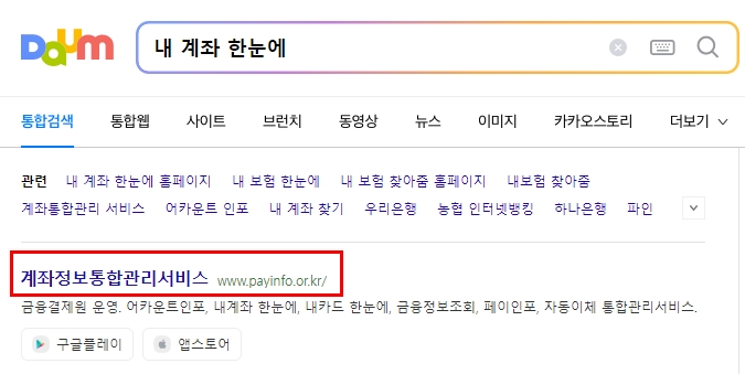 1. 먼저 검색창에 "내 계좌 한눈에"라고 입력해주세요.
