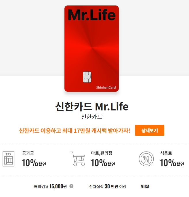 공과금 10% 할인 / 편의점 10% 할인 / 병원, 약국 10% 할인/ 세탁소 10% 할인 /