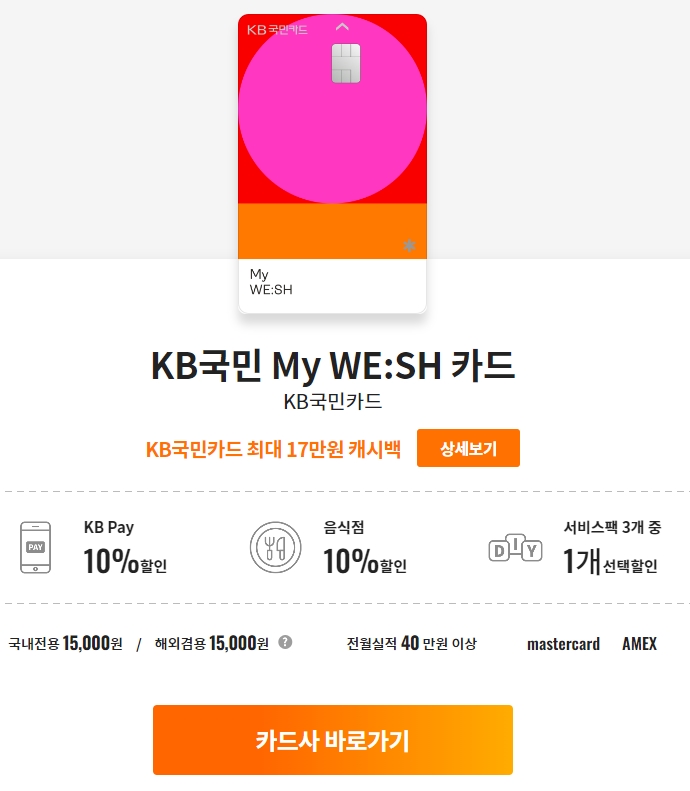KB국민카드답게 KB pay 결제 시 10% 할인 / 음식점, 편의점 10% 할인 /